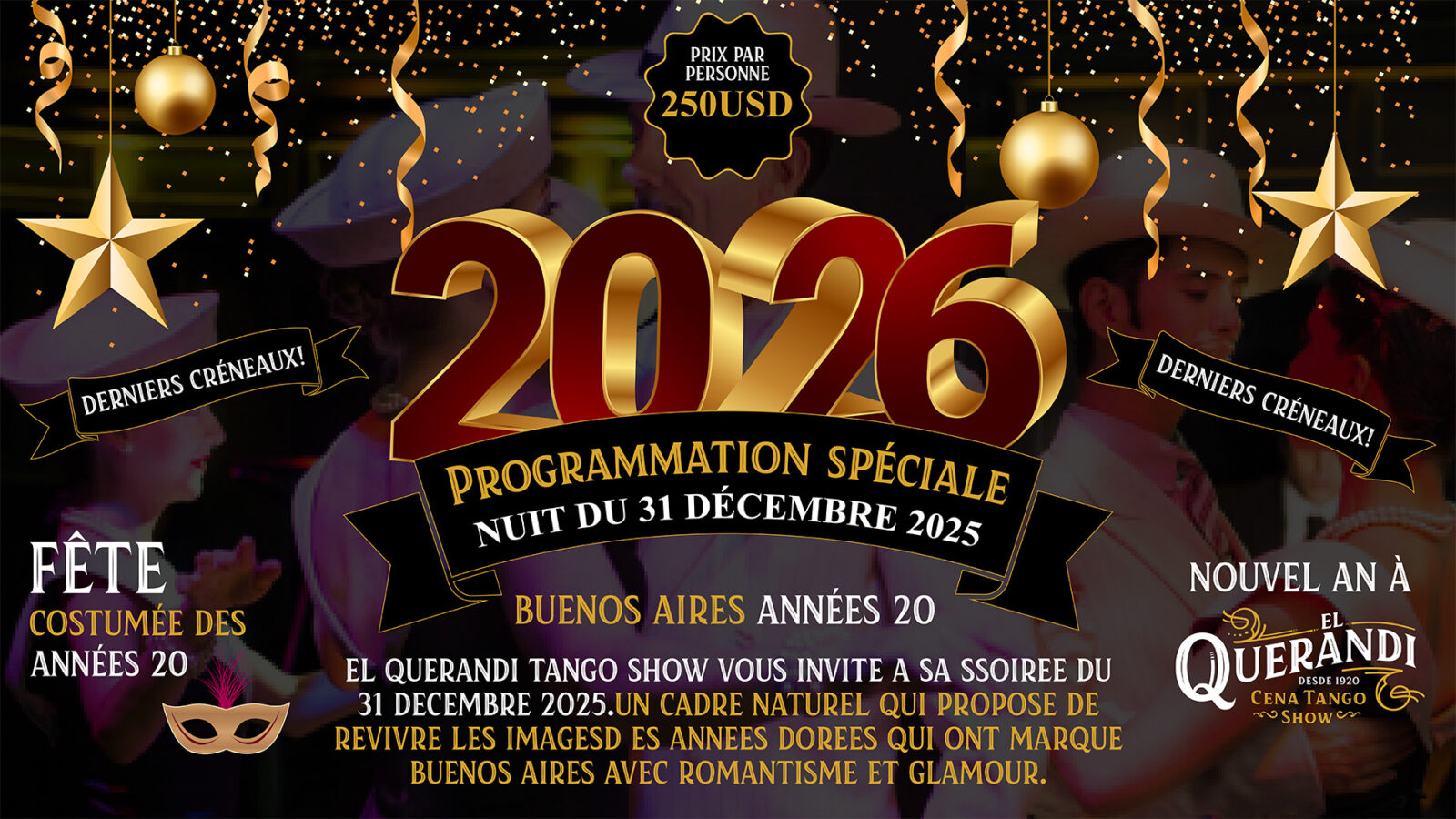- 20h15 : Ouverture du Dîner-Spectacle de Tango El Querandí.