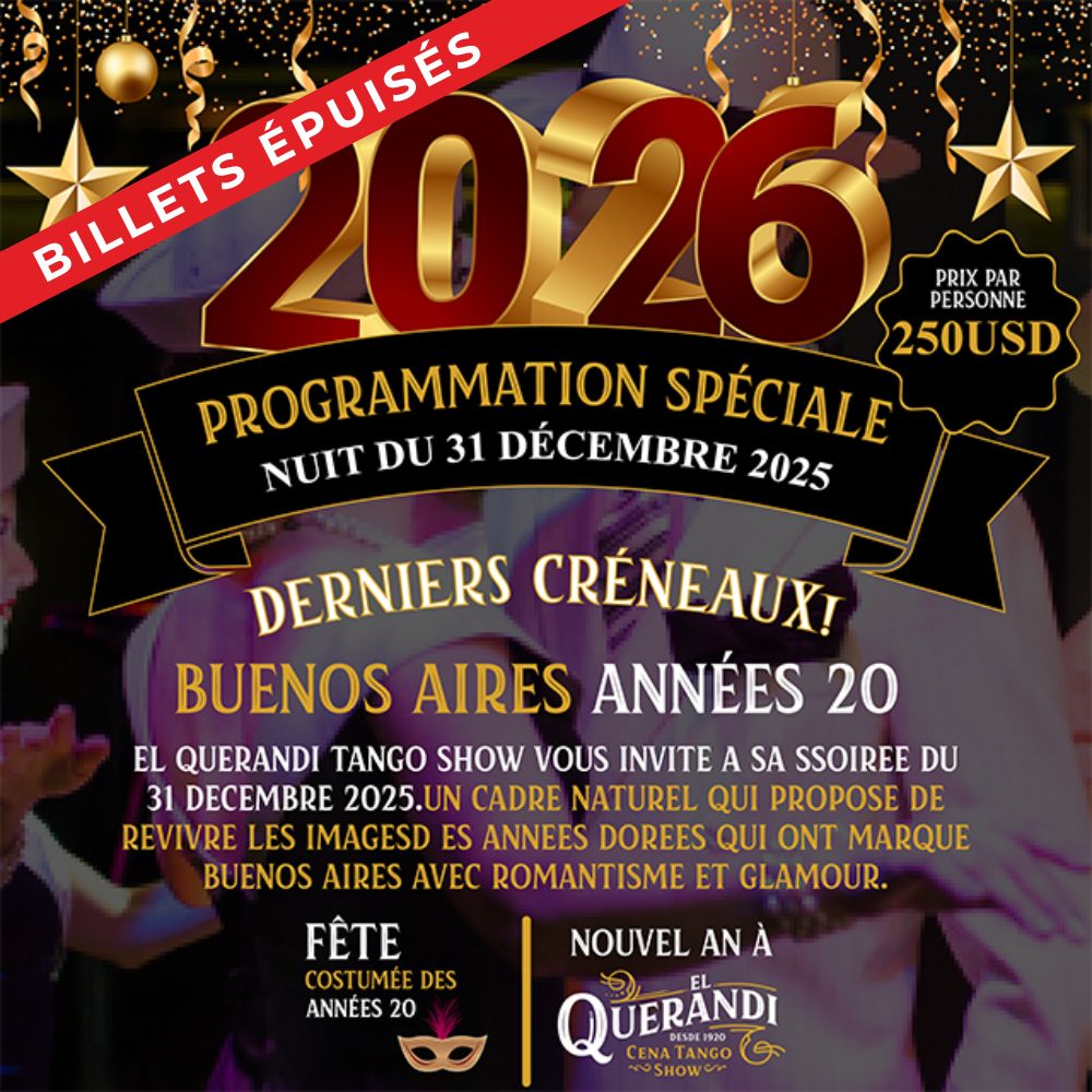 Le dîner-spectacle de tango El Querandi renferme l’essence même de Buenos Aires dans son architecture du début du XXe siècle, avec sa façade Art Déco, ses colonnes salomoniques, ses sols à damier, ses blasons et ses arches, qui invitent à se transporter à une autre époque, à déguster les plats les plus représentatifs de chaque région de notre pays accompagnés des vins argentins réputés, et à profiter du spectacle de tango le plus authentique et passionné de la Ville de Buenos Aires.